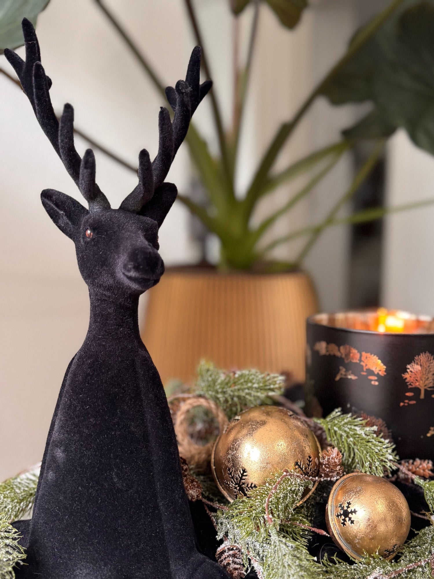 AusverkauftHirsch Kantenhocker in Schwarz beflockt 33 cm