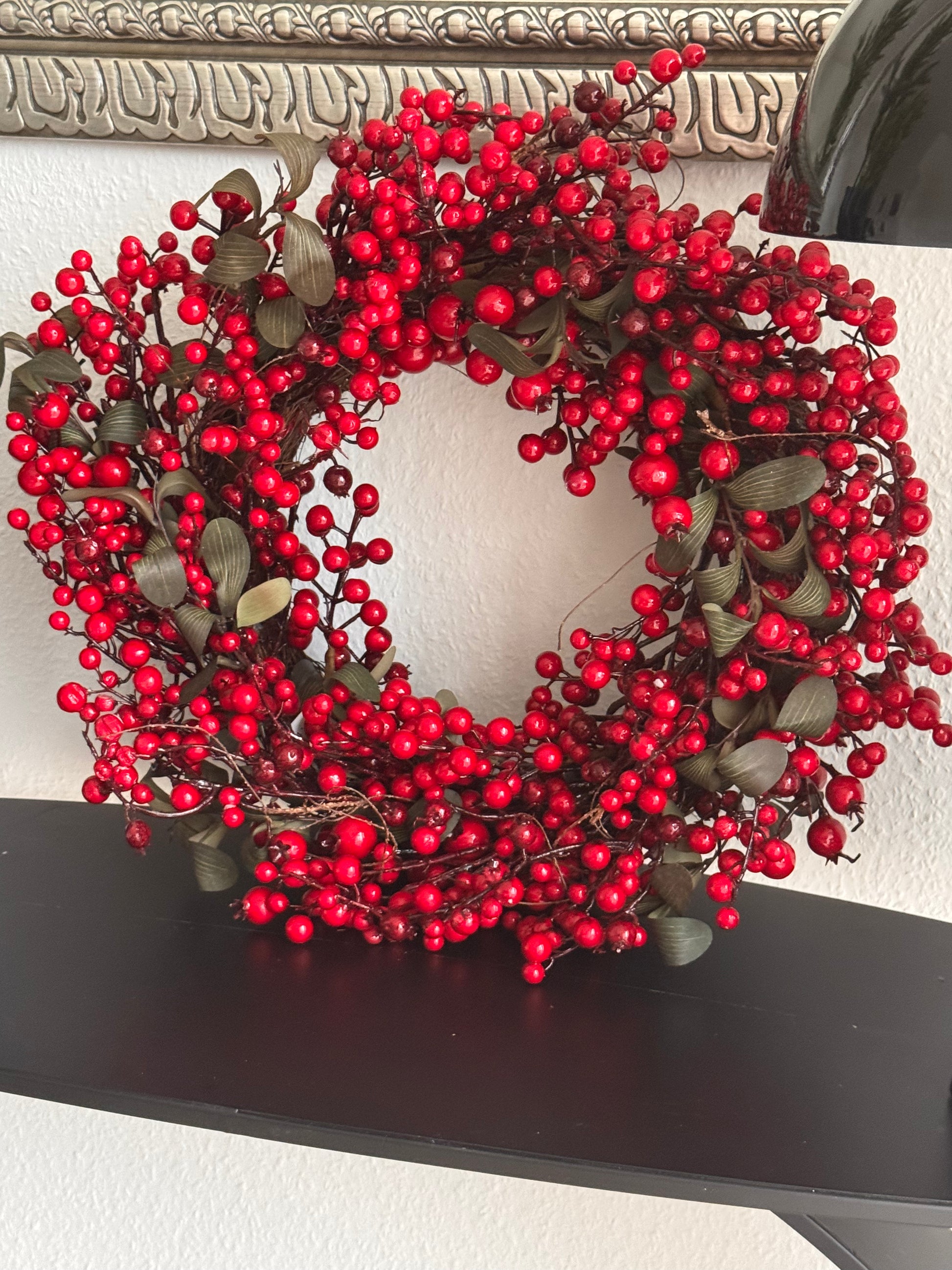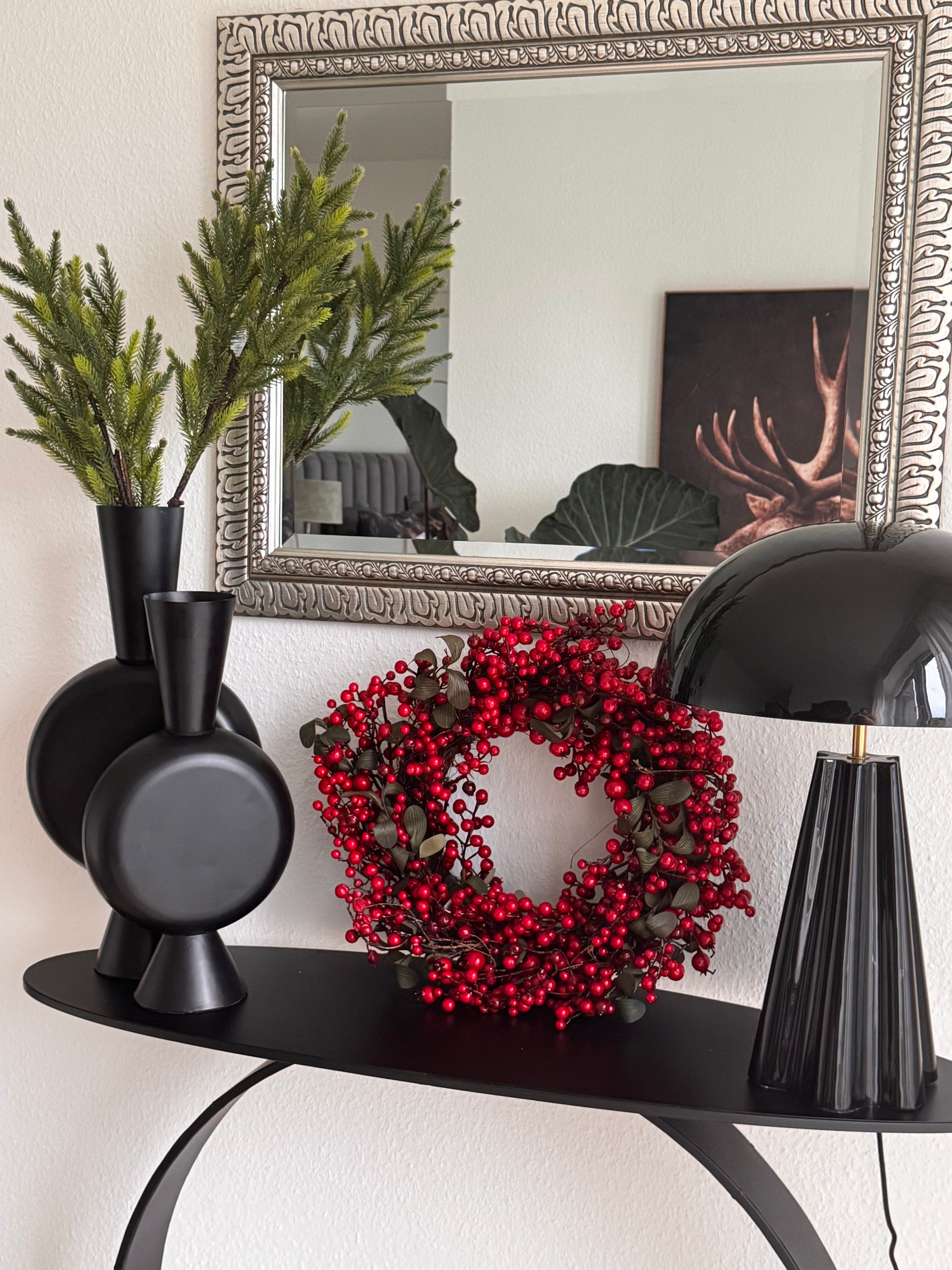 Bringen Sie natürliche Farbenpracht in Ihr Zuhause mit diesem bezaubernden Kranz aus roten Beeren. Die satt roten Beeren wirken wie kleine, frische Früchte und verleihen jedem Raum Wärme und Festlichkeit. Die dezente Grünfärbung der Blätter bietet einen eleganten Kontrast und macht den Kranz vielseitig einsetztbar- sowohl drinnen als auch draußen.