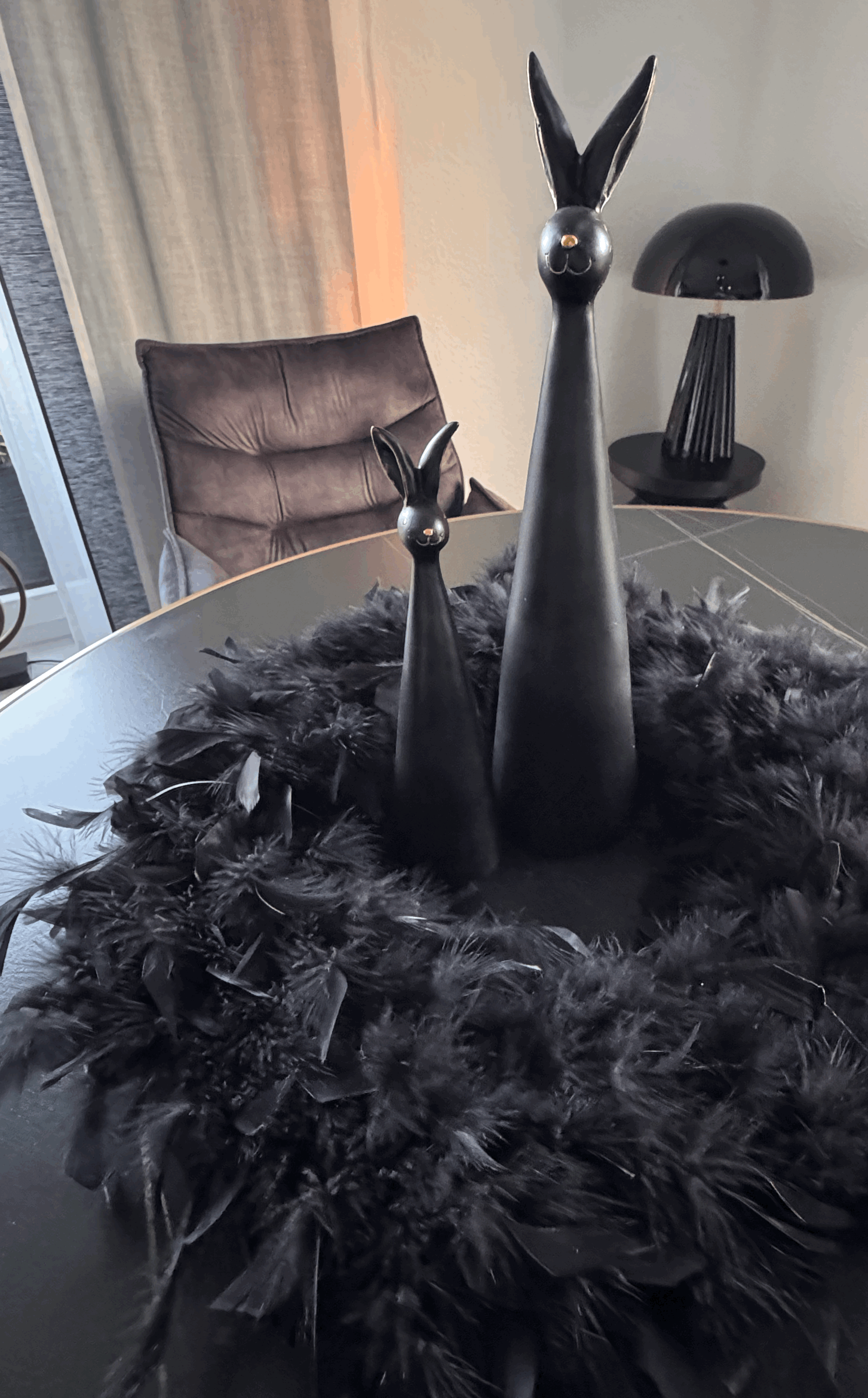 Bringen Sie mit dem dekorativen Kranz aus Federn in Schwarz einen Hauch von Eleganz in Ihr Zuhause. Dieser stilvolle Kranz ist perfekt für die Wand- oder Tischdekoration und verleiht jedem Raum eine besondere Note.