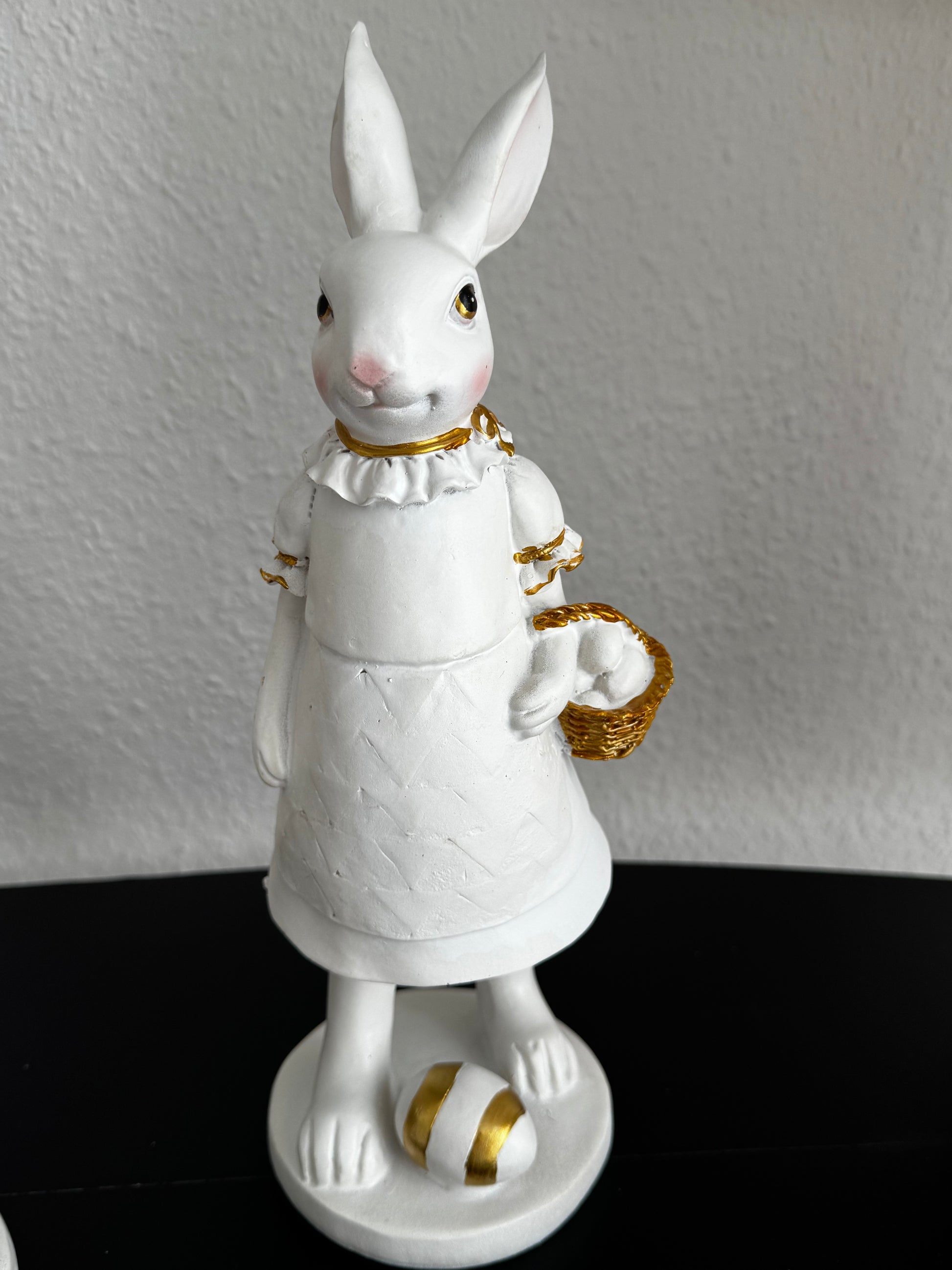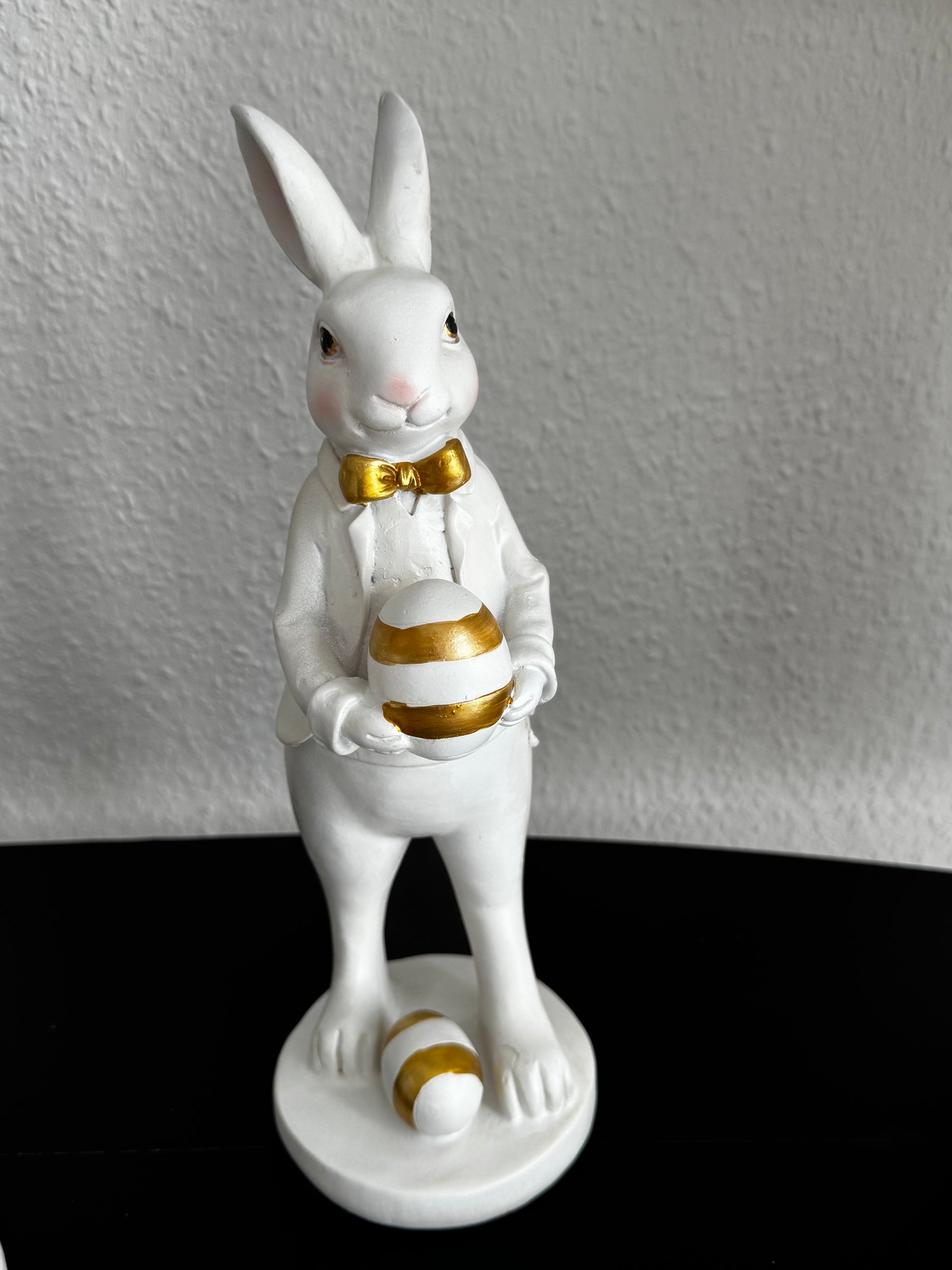 Verleihe deinem Zuhause mit dieser Hasen-Paar eine festliche und zugleich moderne Note. Die Kombination aus strahlendem Weiß und edlen Gold-Akzenten macht diese Figuren zu einen echten Blickfang, der weit über die klassische Osterdekoration hinausgeht.