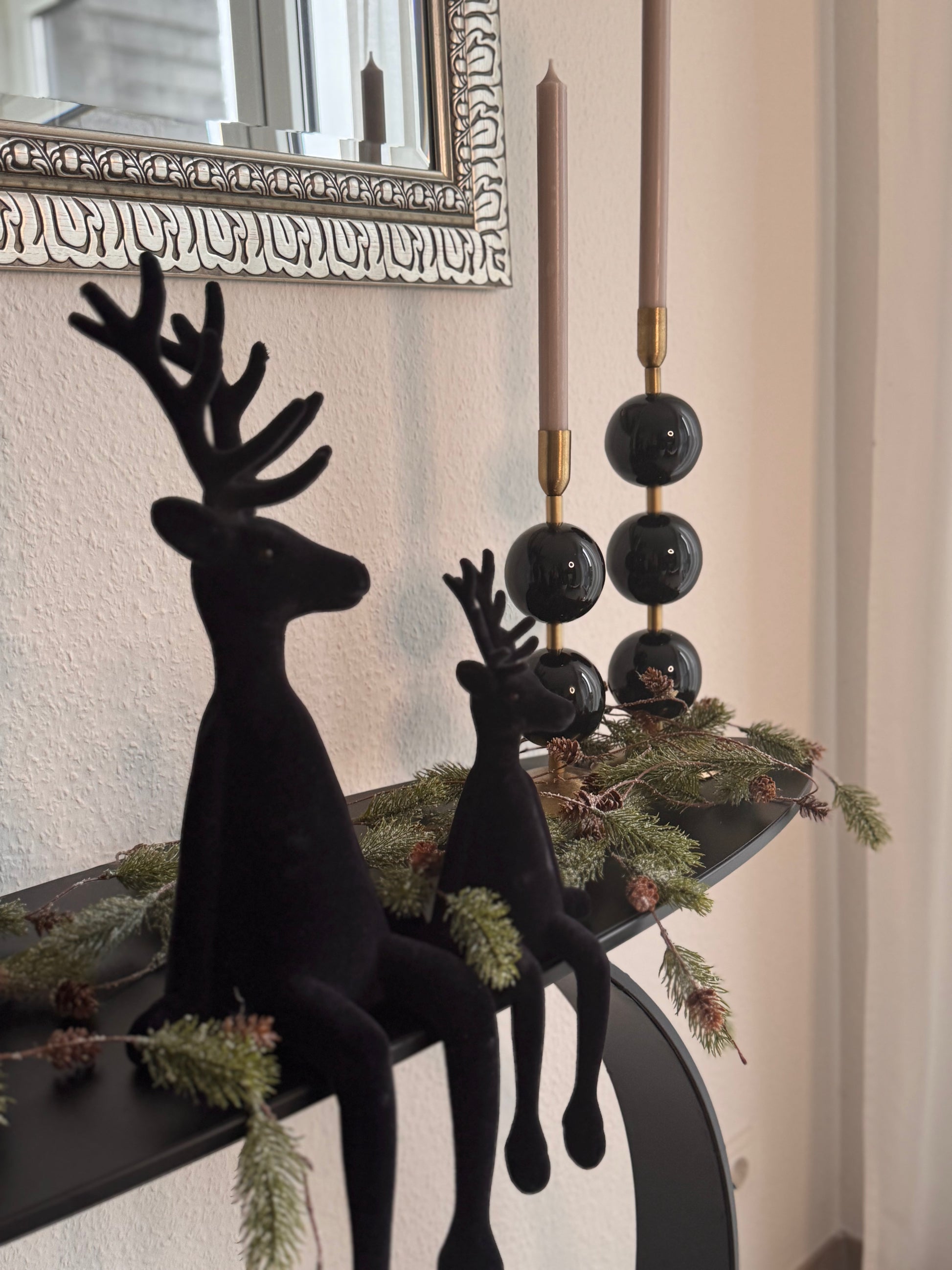 Hirsch Kantenhocker in Schwarz beflockt 56 cm