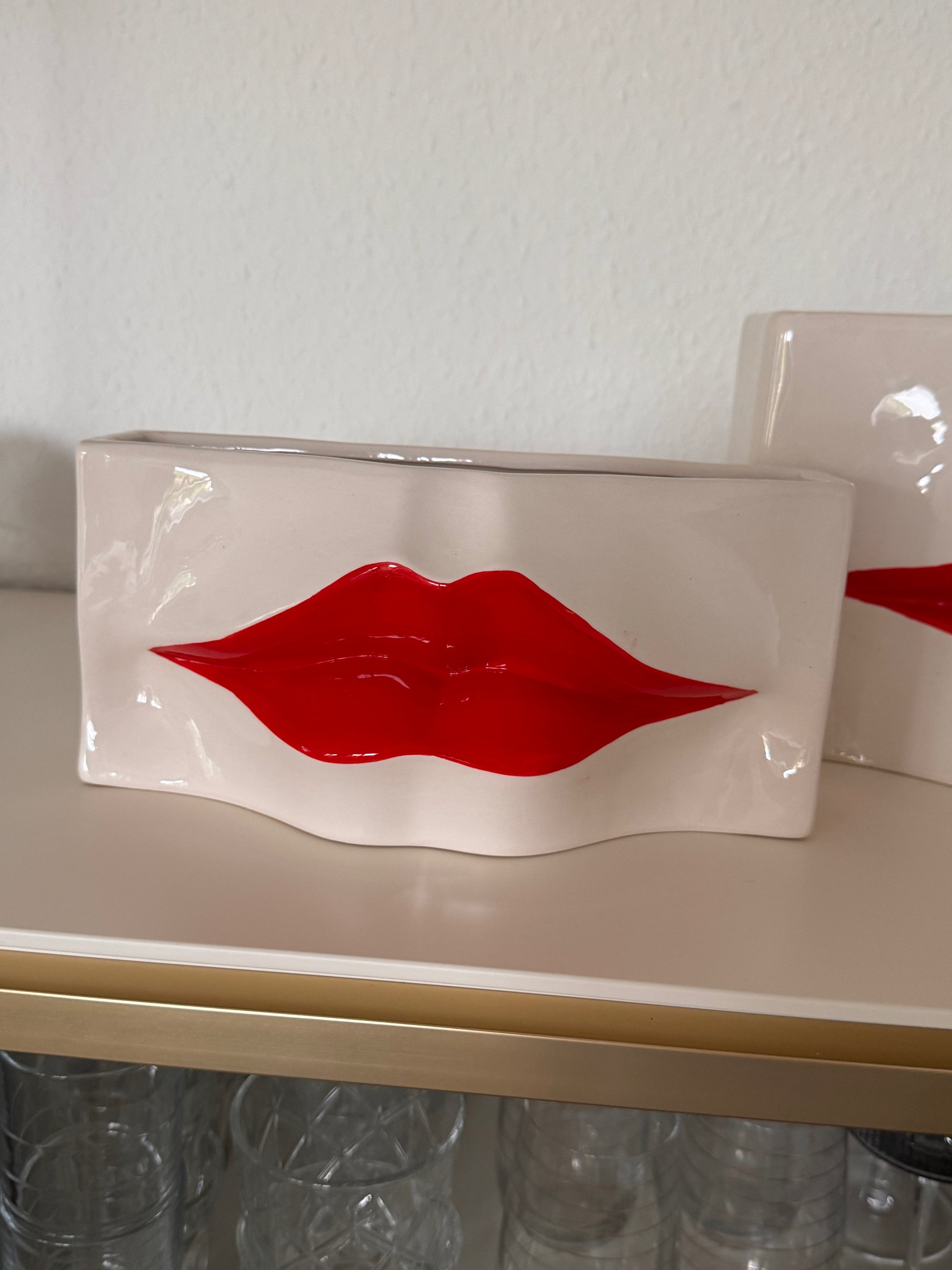 Setze ein außergewöhnliches Highlight in deinem Zuhause oder auf deiner Terrasse mit dieser einzigartigen Lippen-Jardiniere. Das moderne Design in Form von sinnlichen roten Lippen auf einer eleganten weißen Oberfläche macht diese Pflanzschale zu einem echten Kunstwerk. Ob für bunte Blumen, grüne Pflanzen oder als dekoratives Element - diese Jardiniere verbindet Stil mit Funktionalität und sorgt für einen modernen, kreativen Akzent. Die großzügige Form eignet sich perfekt für mittelgroße Pflanzen und sorgt für eine stilvolle Präsentation deiner Lieblingsblumen oder Grünpflanzen.