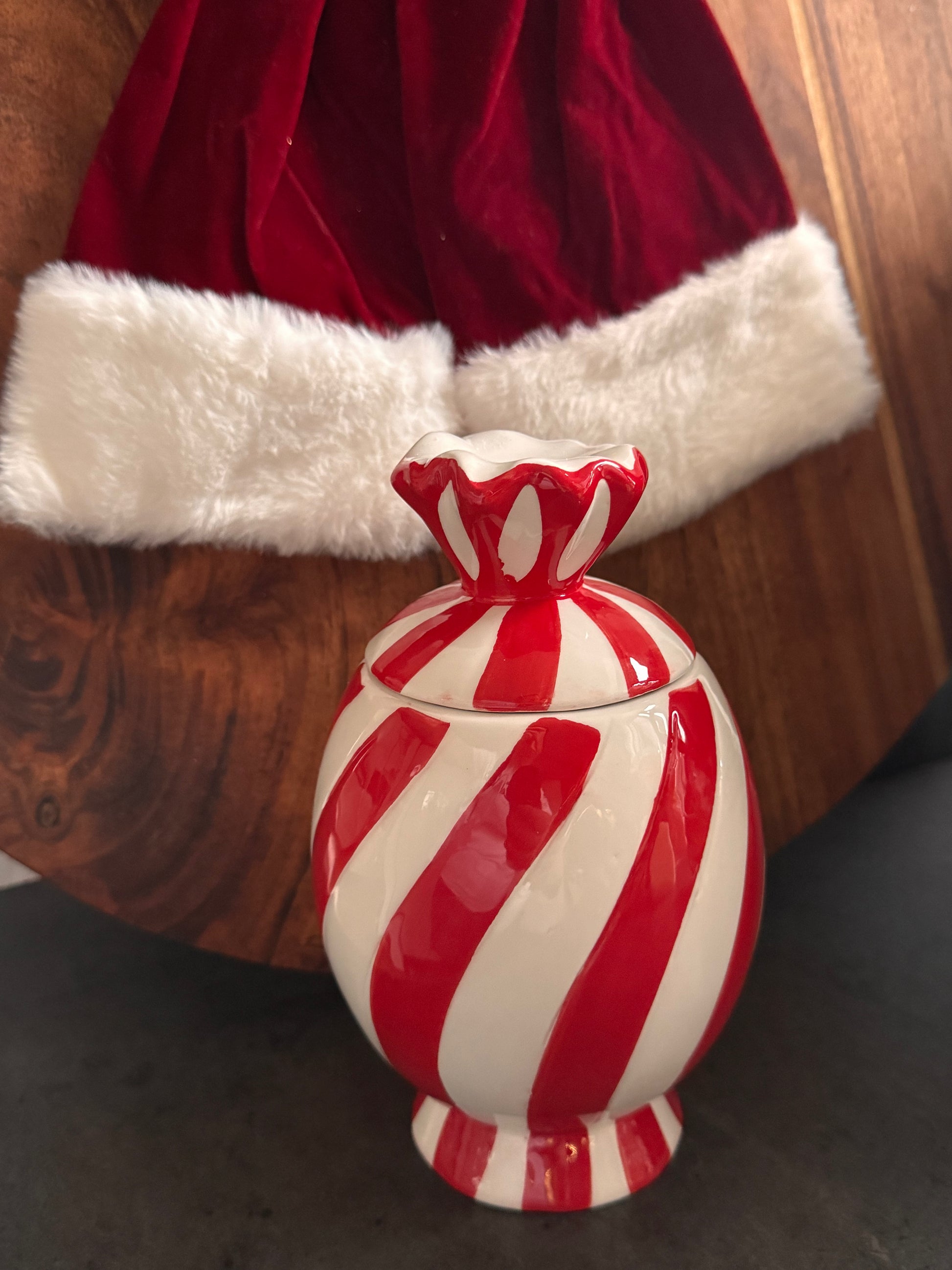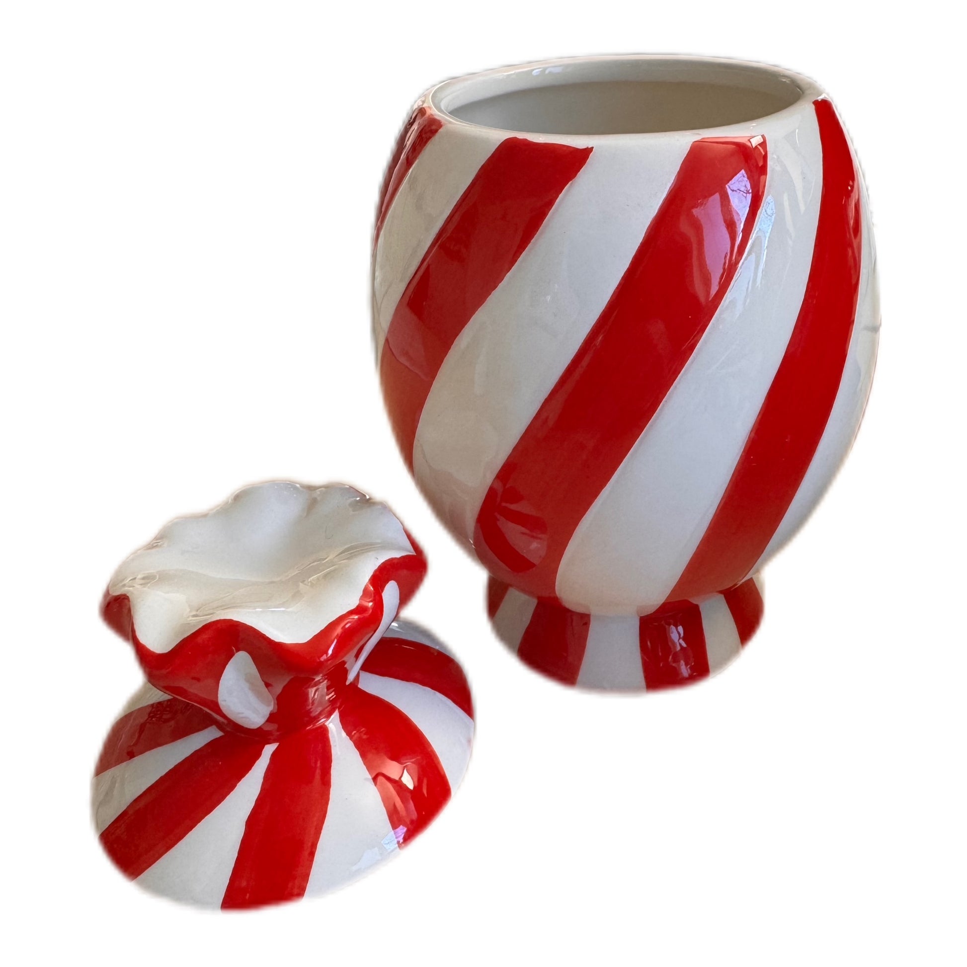 Diese festliche Keksdose verleiht jeder Küche einen Hauch von Weihnachtszauber. Die rote Dose mit verspielten Bonbon-Motiv erinnert an gemütliche Plätzchenstunden. So bleiben Ihre Plätzchen und Naschereien in der Adventszeit frisch.