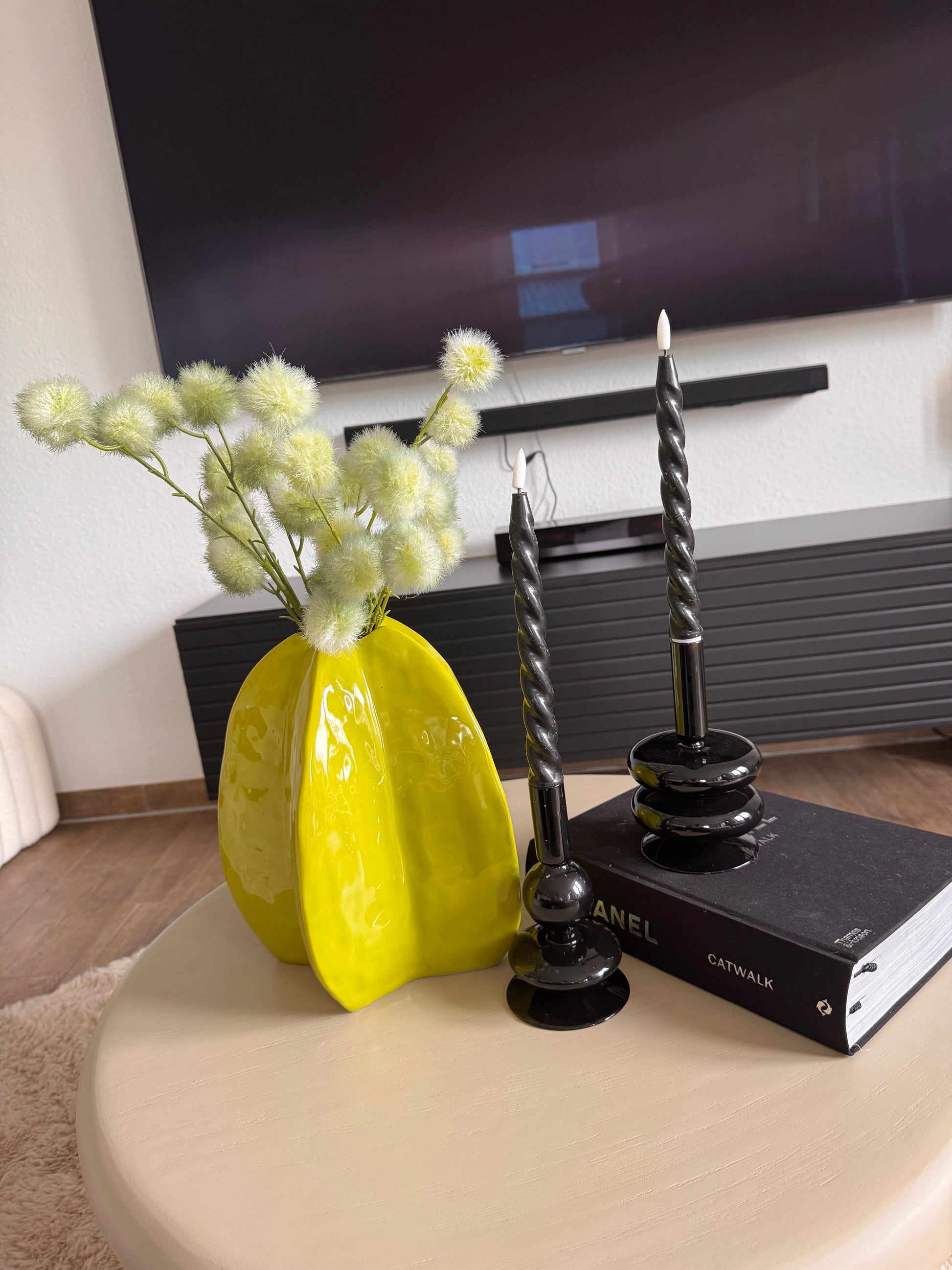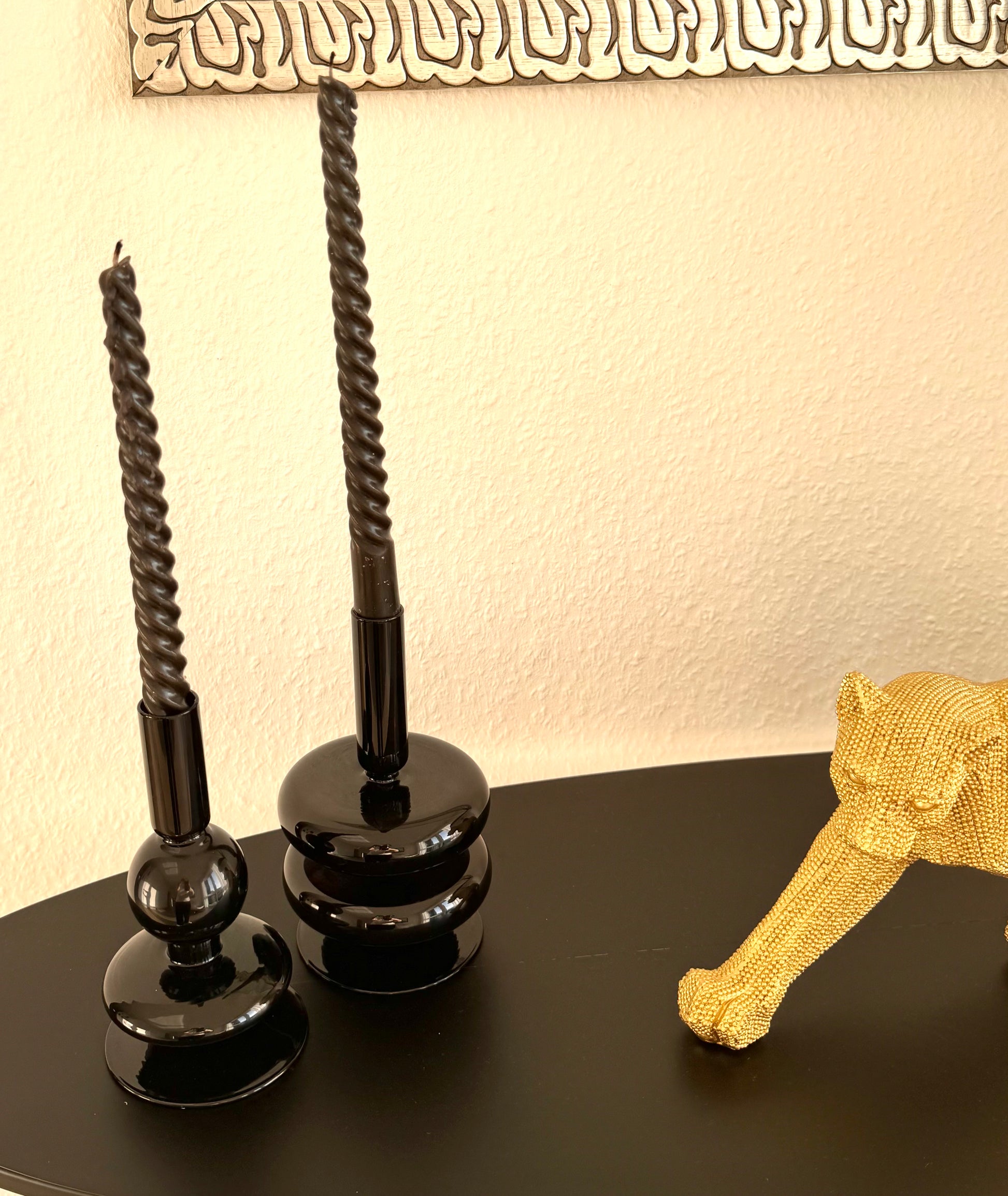 Setzen Sie stilvolle Akzente in Ihrem Zuhause mit dem edlen Kerzenhalter. Gefertigt aus hochwertigen Schwarzglas, besticht dieses elegante Accessoires durch sein modernes Design und seine zeitlose Schönheit. Die formschöne Gestaltung schafft eine harmonische Balance zwischen Funktionalität und Ästhetik -perfekt, um eine gemütliche Atmosphäre bei Kerzenschein zu schaffen. Ob auf dem Esstisch, im Wohnzimmer oder im Eingangsbereich- der Kerzenhalter verleiht jedem Raum eine besondere Note.