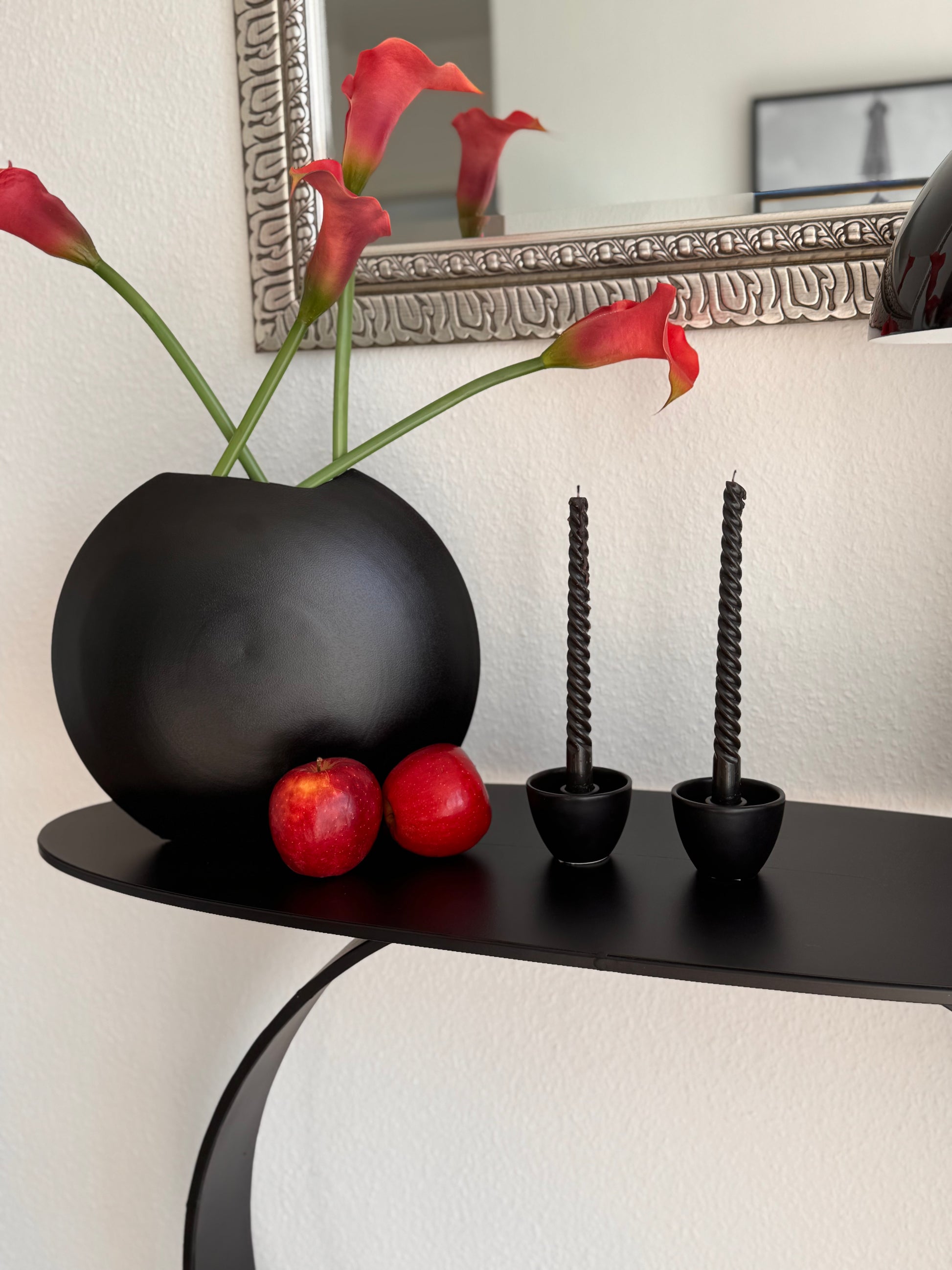 setze stilvolle Akzente mit diesem schlichten, schwarzen Kerzenhalter! Das minimalistische Design und die matte Oberfläche machen ihn zum perfekten Begleiter für moderne und klassische Wohnkonzepte. Ob einzeln, im Duo oder als Teil eines dekorativen Arrangements - dieser Kerzenständer bringt Gemütlichkeit und Eleganz auf deinen Tisch, dein Sideboard oder die Fensterbank. Die klassische Form fügt sich harmonisch in jede Einrichtung ein. Passend für Standard Stabkerzen- ideal für festliche Tafeln, gemütliche Abende oder als stilvolles Deko Element.
