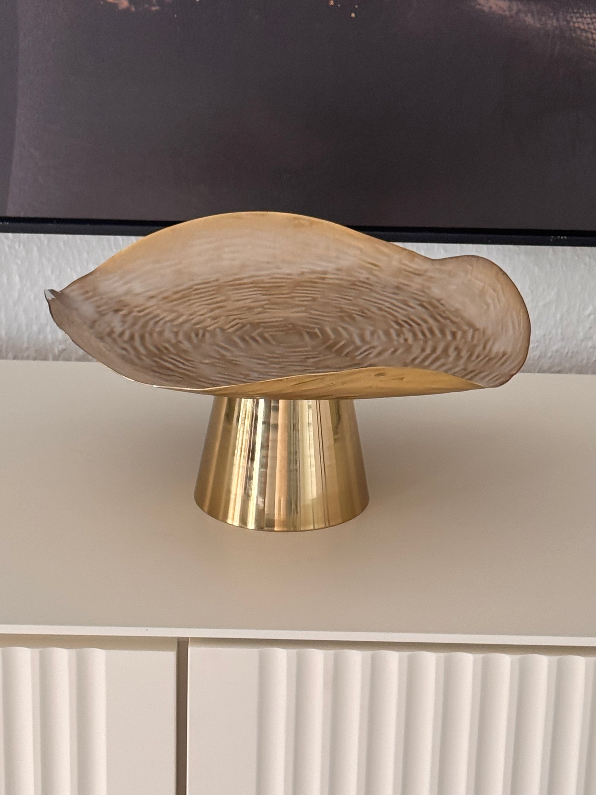 Diese Kuchenplatte ist mehr als eine Servierplatte. Die Creme-Gold Oberfläche sorgt für eine hochwertige Optik, die Kuchen, Desserts und Torten ins Licht rückt. Aber auch für Dekorationszwecke gut nutzbar.