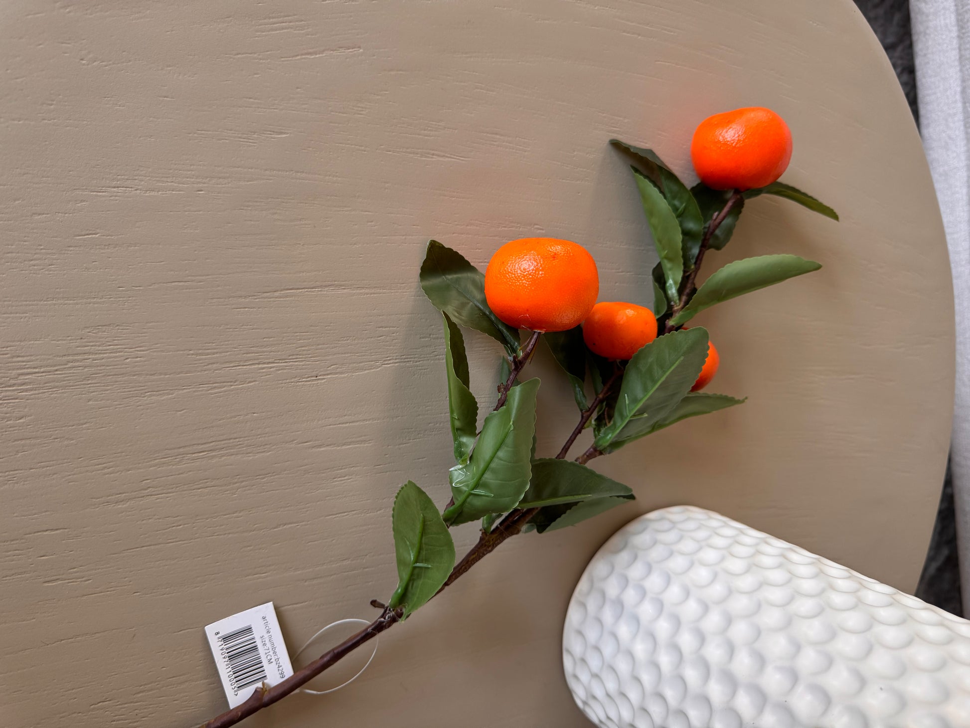 Bringen Sie einen Hauch von Sommer und Frische in deine Räume mit dieser realistisch aussehenden künstlichen Orangen-Arrangements. Perfekt für Dekorationen, Vasen oder Blickfang auf Tischen und Regalen. Die detailreiche Gestaltung mit grünen Blättern und leuchtend orangenen Orangen sorgt für eine natürliche und fröhliche Atmosphäre.