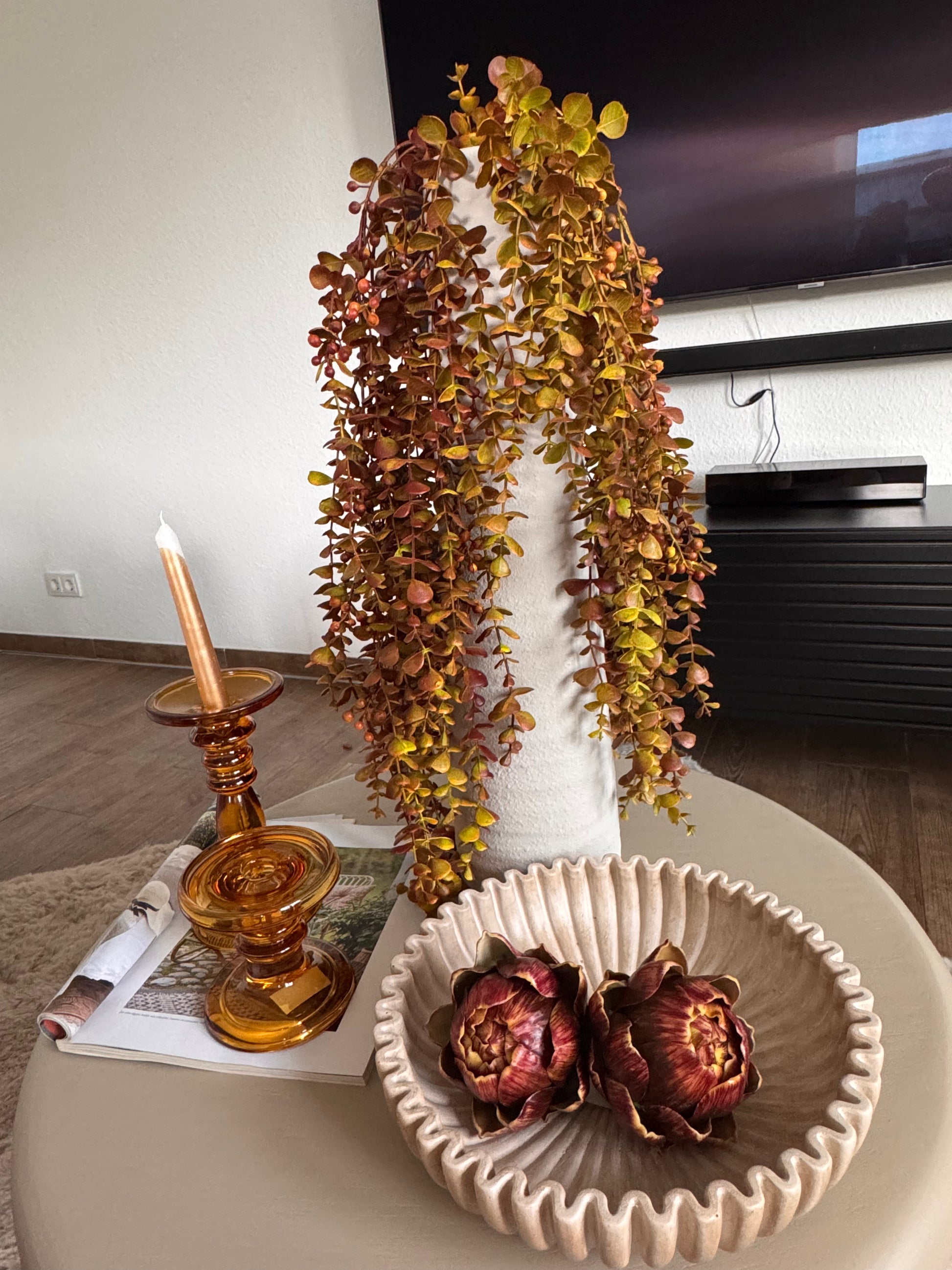 Bringen Sie einen Hauch von Natur in Ihr Zuhause mit diesem kunstvollen künstlichen Eukalyptus. Die detailreiche Nachbildung mit ihren zarten, getrocknet wirkenden Blättern und Zweigen verleiht jedem Raum eine warme und natürliche Atmosphäre. Ob als einzelnes dekoratives Element oder in Kombination mit anderen Trockenblumen -diese Eukalyptus - Dekoration ist vielseitig einsetzbar.