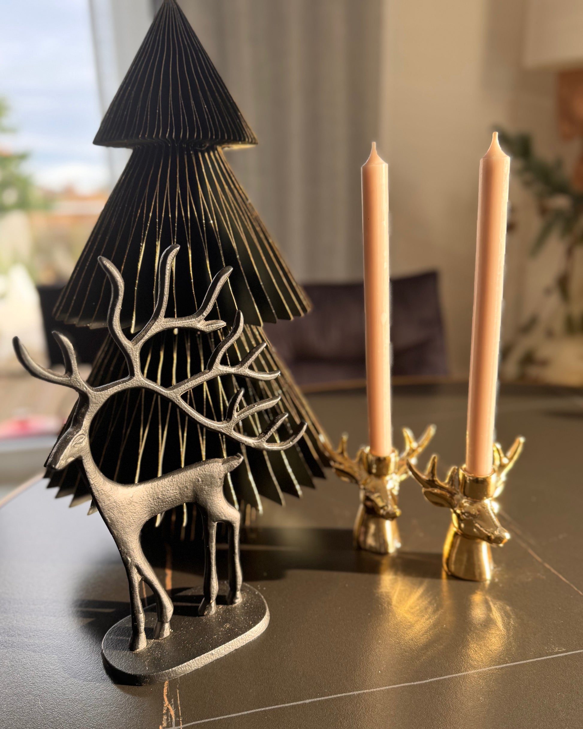 Setzen Sie elegante Akzente in Ihrer Wohnraumdekoration mit diesem stilvollen Hirsch aus Metall. Das minimalistisch Design und die filigran gearbeiteten Geweih-Details machen diese Figur zu einem besonderen Blickfang, der sich nahtlos in verschiedene Einrichtungsstille einfügt.