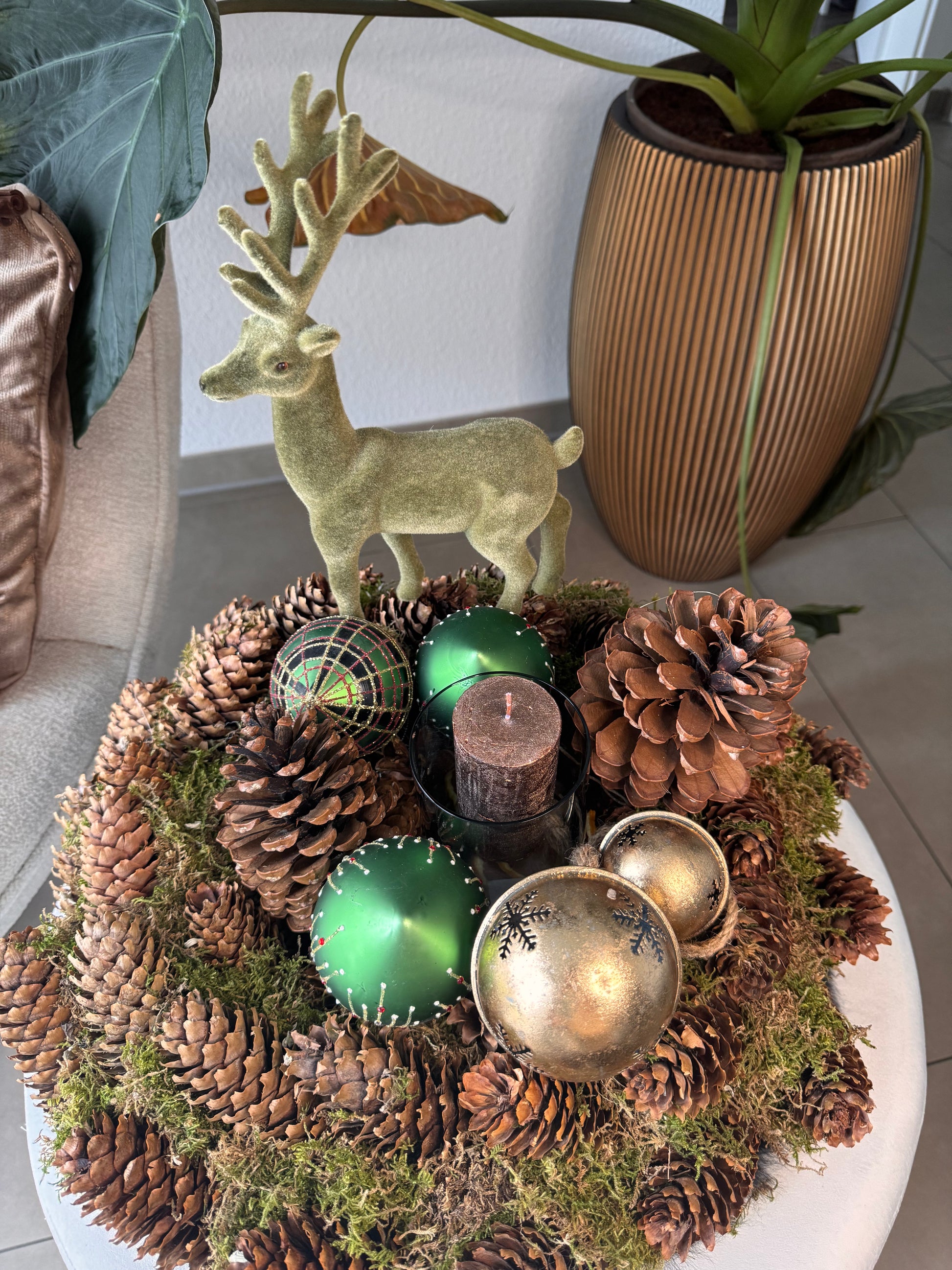 Erlebe naturbelassene Eleganz in deiner Wohnung mit dem Mooskranz mit Tannenzapfen. Der Kranz ist aus hochwertigen Moos gefertigt und mit liebevoll ausgesuchten Tannenzapfen verziert- Perfekt für eine warme, festliche Atmosphäre oder als zeitloses Deko Highlight das ganze Jahr über.