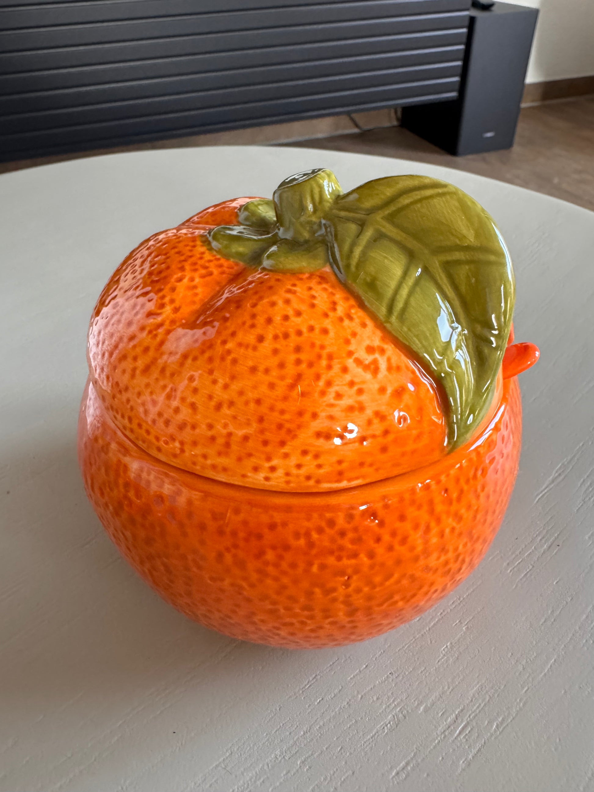 Dieser bezaubernde Topf in Orangen Look kombiniert praktischen Nutzen mit frischen Design. Das detailreiche Erscheinungsbild in Orangetönen mit grünen Blättern macht sie zu einem echten Blickfang. Ideal um Marmelade, Honig oder andere Delikatessen zum Aufbewahren.