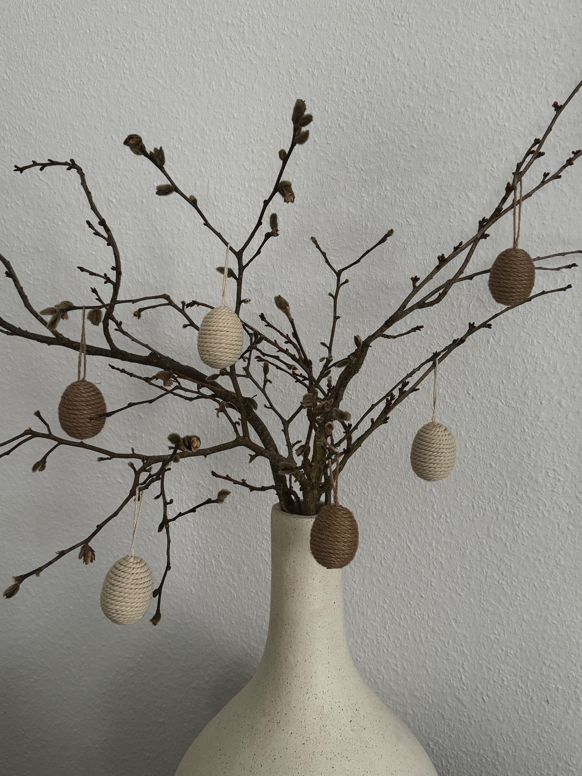 Verwandeln Sie Ihren Osterstrauch in einen echten Hingucker mit diesen charmanten Jute-Eiern!