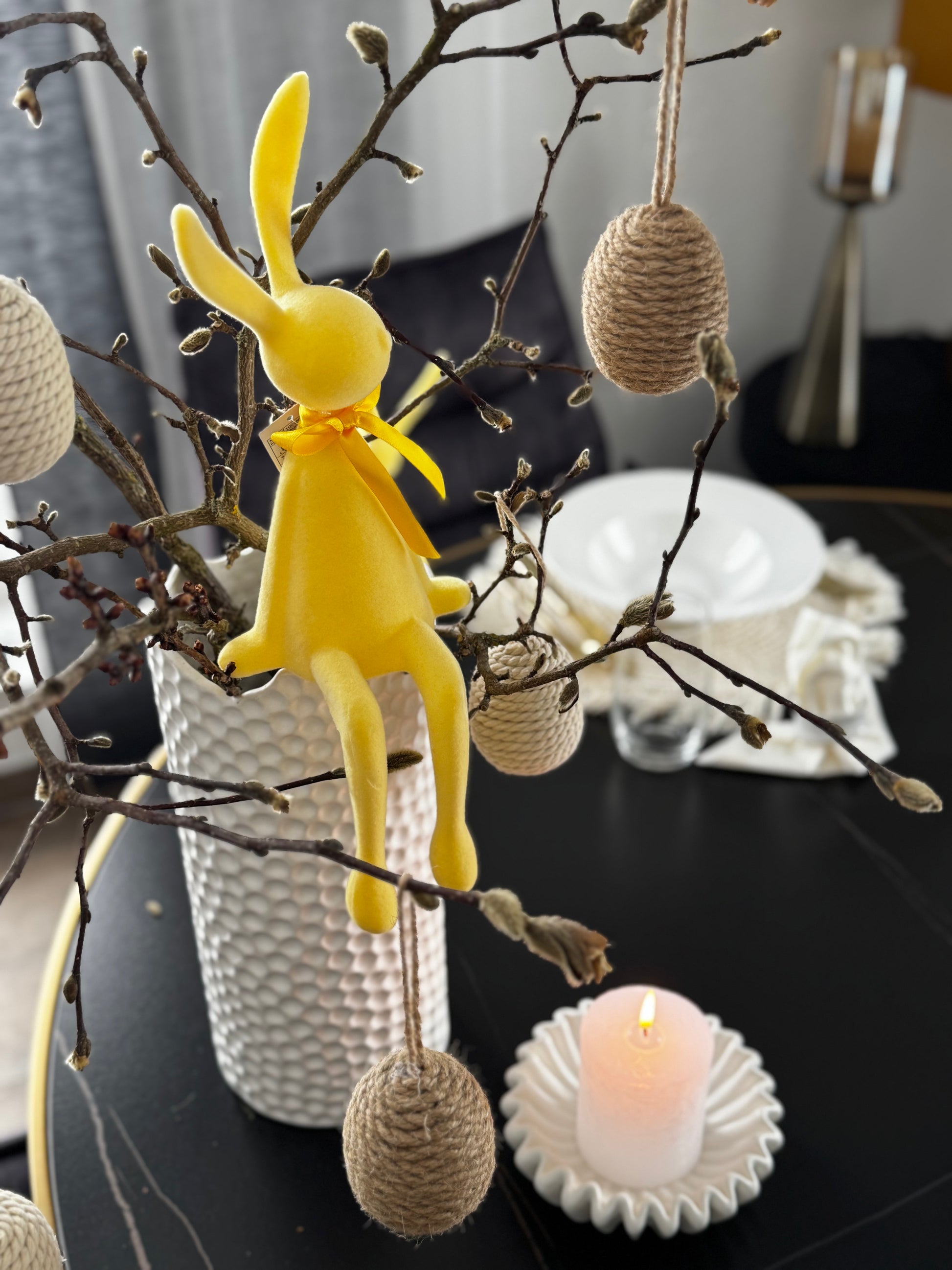 Machen Sie es sich gemütlich! Unser sitzender Osterhase ist der perfekte Gast für Regalkanten, Fensterbänke oder Stufen. Als charmanter Kantenhocker lässt er sich entspannt die Beine baumeln und bringt sofortige Osterstimmung in Ihr Zuhause.