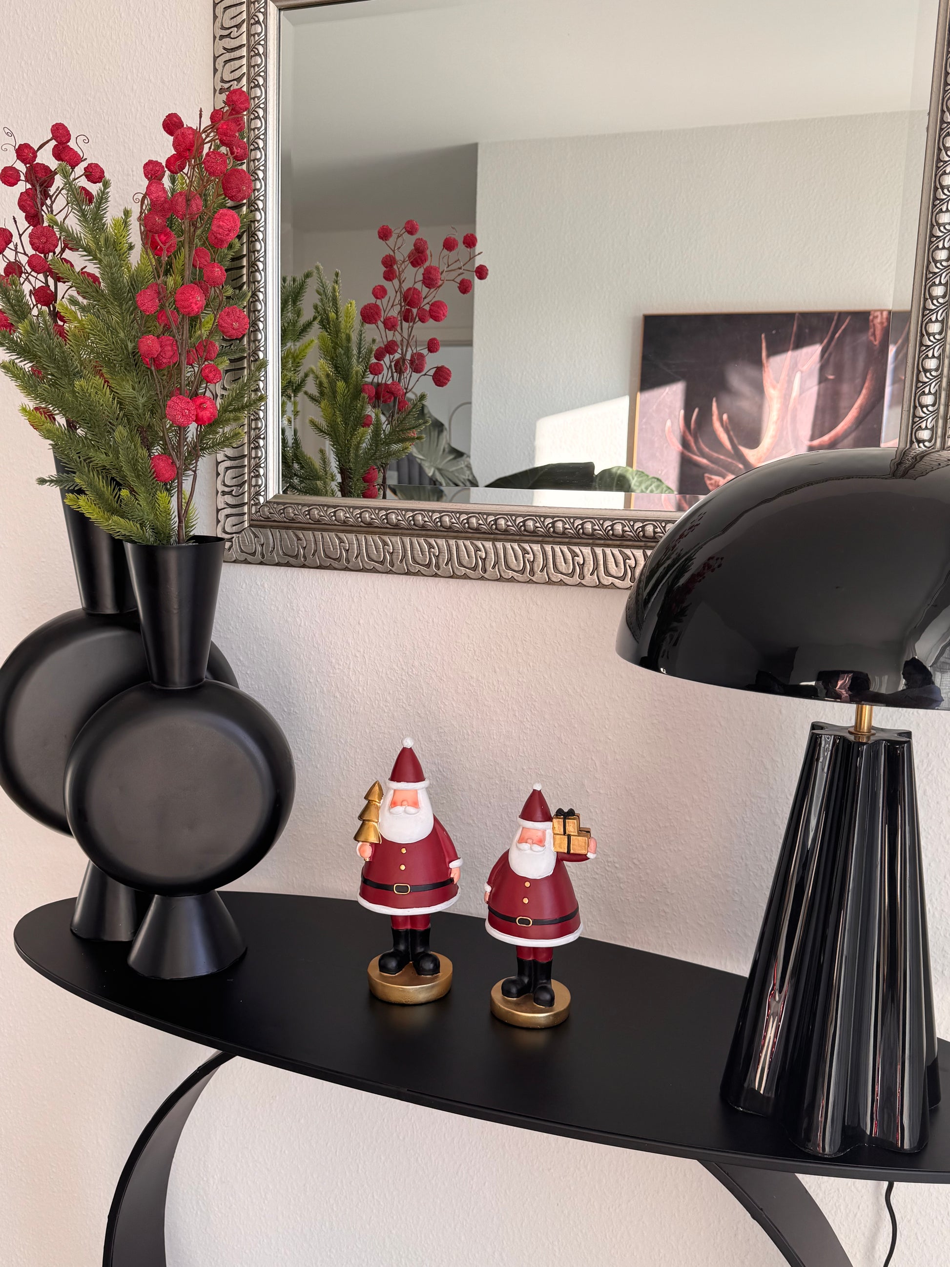 Material: Polyresin, rotes Outfit, weiße Fellakzente, schwarzer Gürtel mit Goldschnalle
