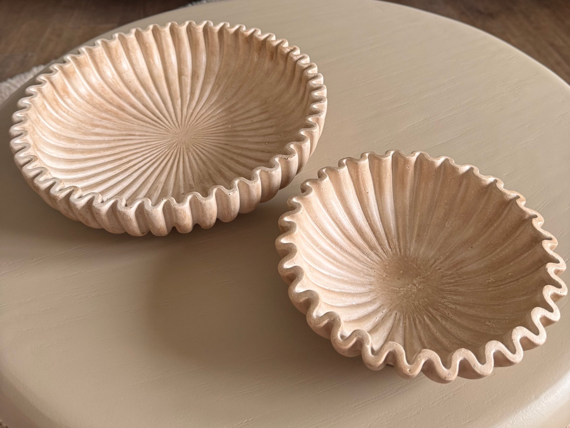 Dekorative und stilvolle Plisseeschale in Beige groß