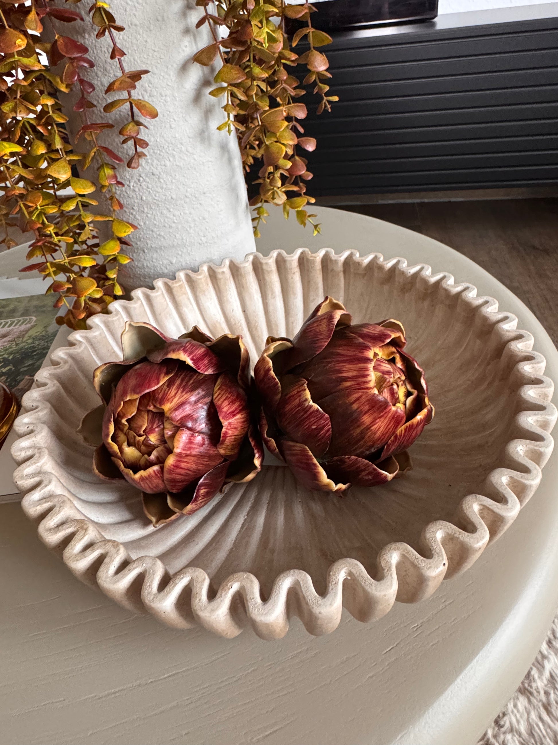 Verleihen Sie Ihrem Zuhause eine elegante und natürliche Note mit dieser wunderschönen Plisseeschale in Beige. Das funktionale und gleichzeitig dekorative Design erinnert an die zarten Falten eines Plissees und macht die Schale zu einem echten Blickfang. Ob als Obstschale, für Süßigkeiten oder als reine Dekoration- diese Schale beeindruckt durch ihre edle Optik und hochwertige Verarbeitung.