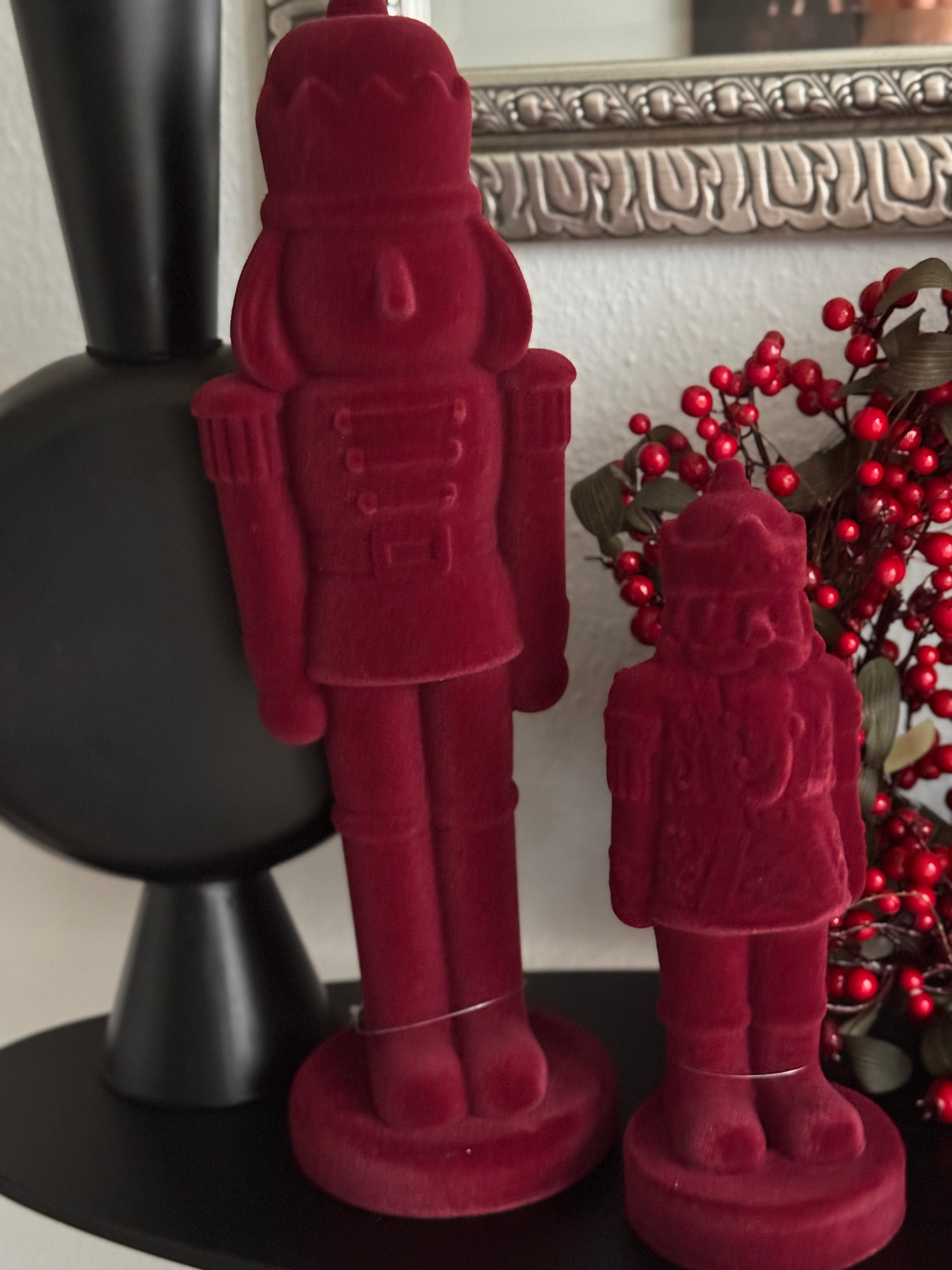 Eleganz trifft Festlichkeit: unser stehender Soldat aus Samt in tiefen Bordeaux setzt stilvolle Akzente in jeder Deko Szene. Die samtige Oberfläche und die detailreiche Silhouette erzeugen einen nostalgische, winterlichen Charme- perfekt als Highlight auf Sideboard, Kommode oder Vitrine.