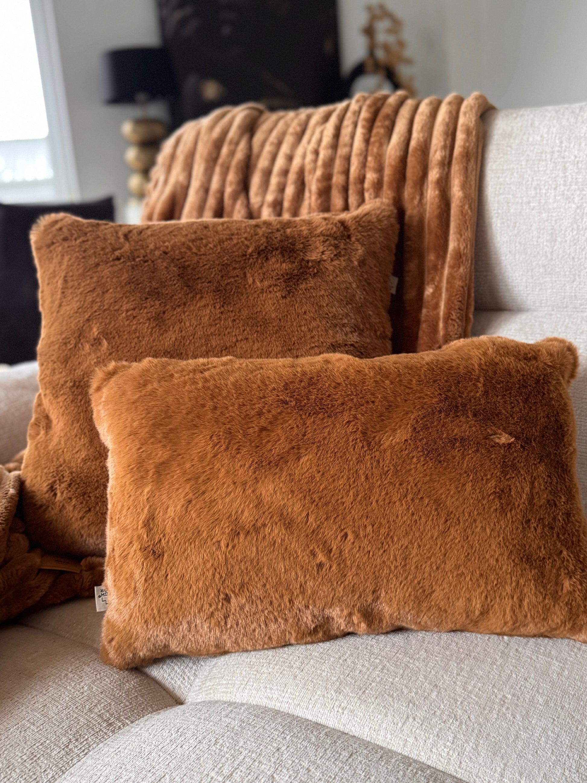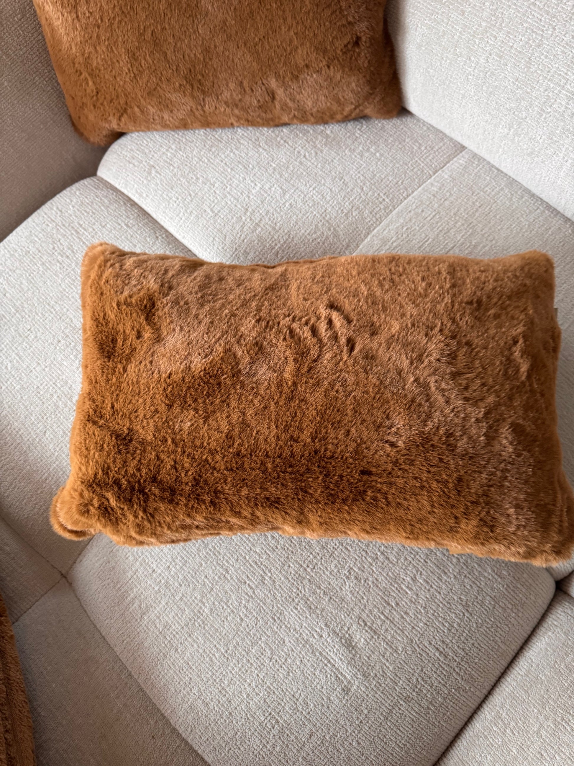 Passt gut zu braunen Holztönen, Beige, Creme und anderen Naturfarben. Weicher Plüsch Stoff für ein behagliches Kuschelgefühl.